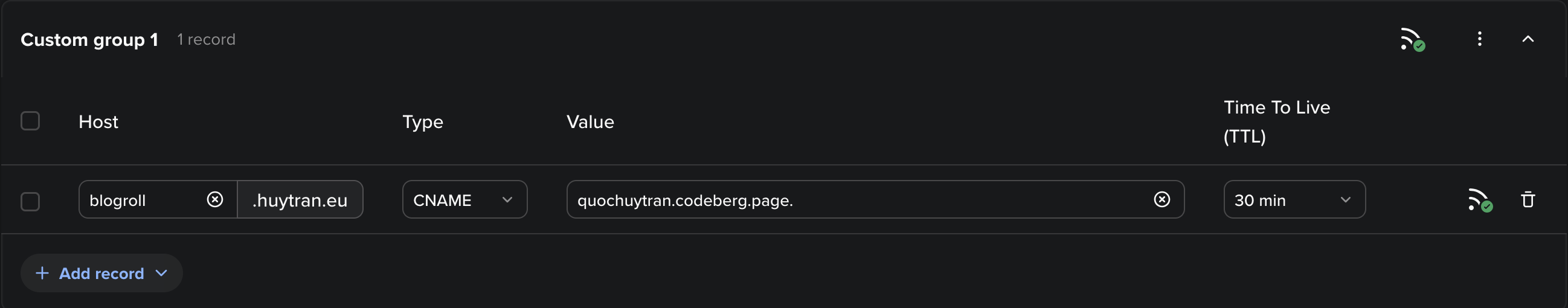 In my recent note about my open-source changes, I mentioned about Codeberg. The whole platform is minimal and well-done for my use case (casual/hobby programming). So I was thinking of building something. I got one pending project in mind, a blogroll. I use Codeberg Pages and Using Custom Domain.