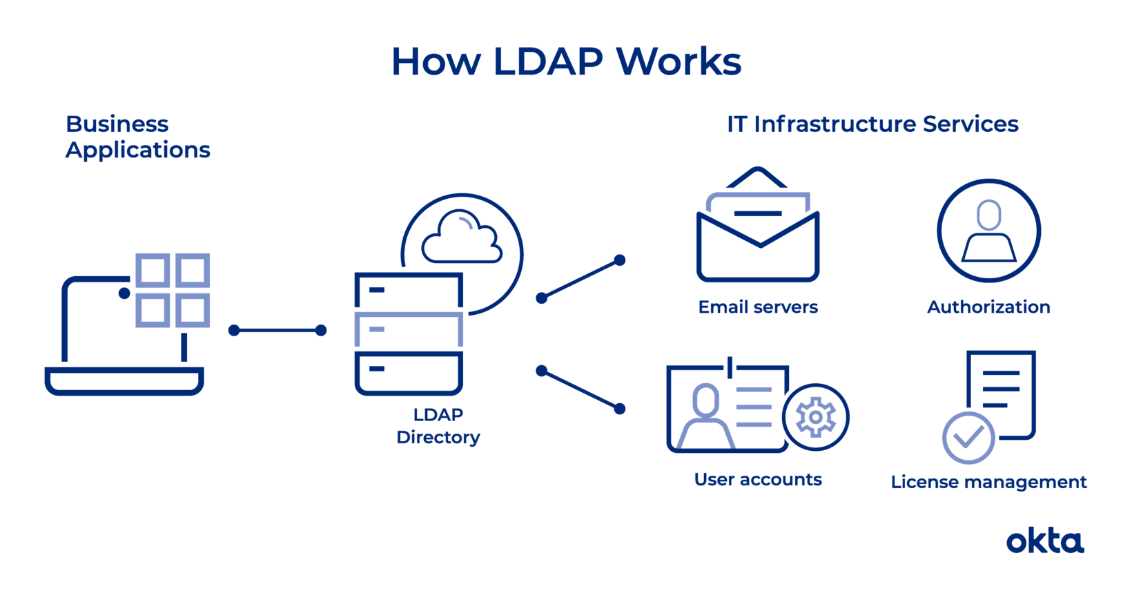 LDAP (Lightweight Directory Access Protocol) is a protocol used to access and manage directory information. It is a standard protocol for accessing and maintaining distributed directory information services over an IP network. LDAP is used to access and manage the directory information.