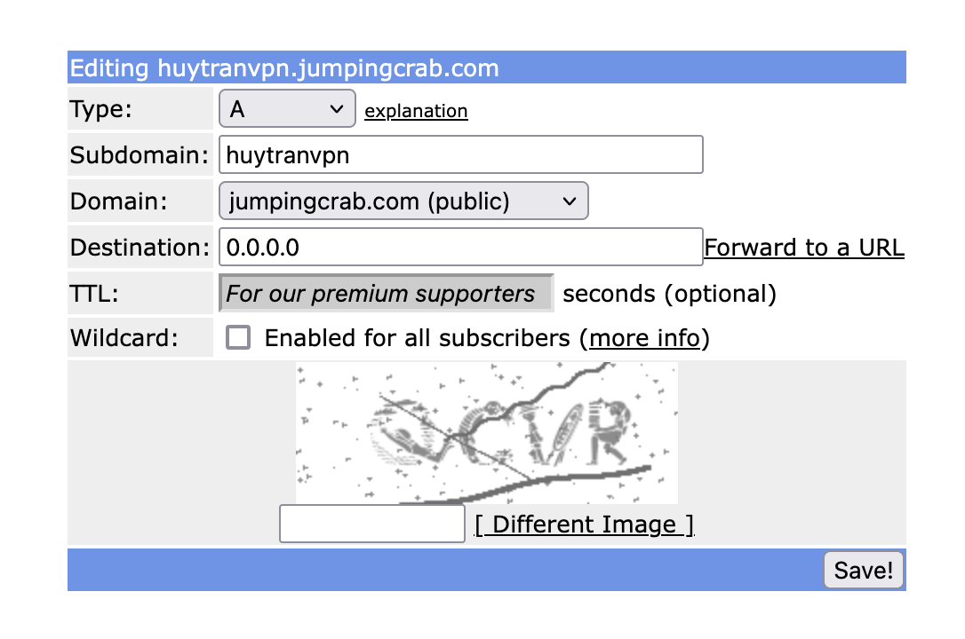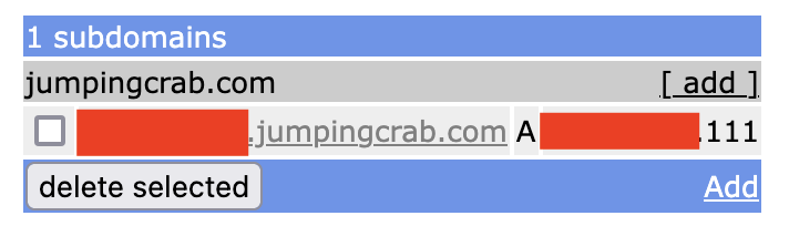 After registering on the website and activating your account via email, click on the “Add a subdomain”. Here, the things we need to change are: