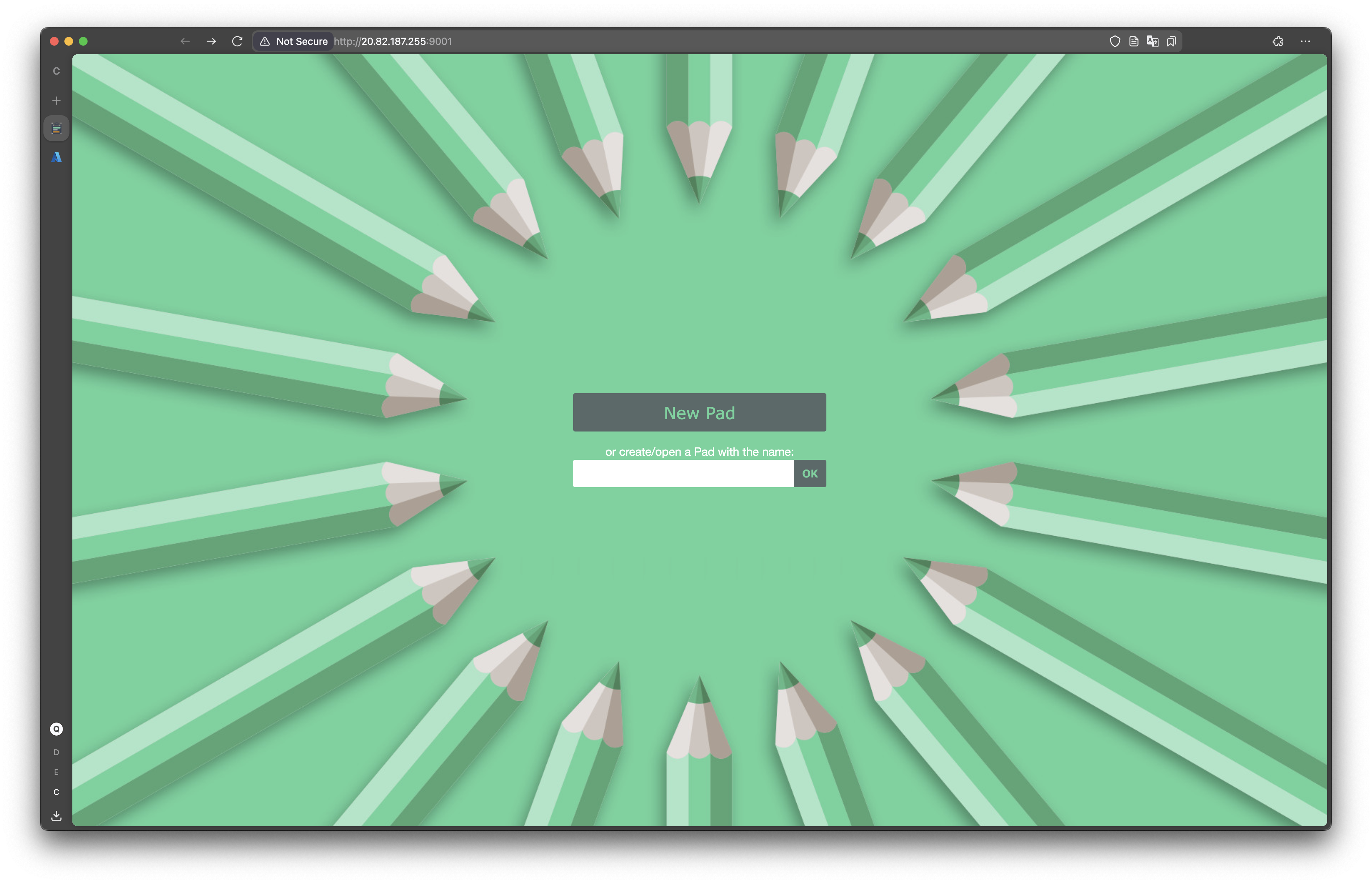You should see the Etherpad interface. If you encounter issues, double-check that the VM’s firewall settings and NSG rules allow traffic on port 9001.