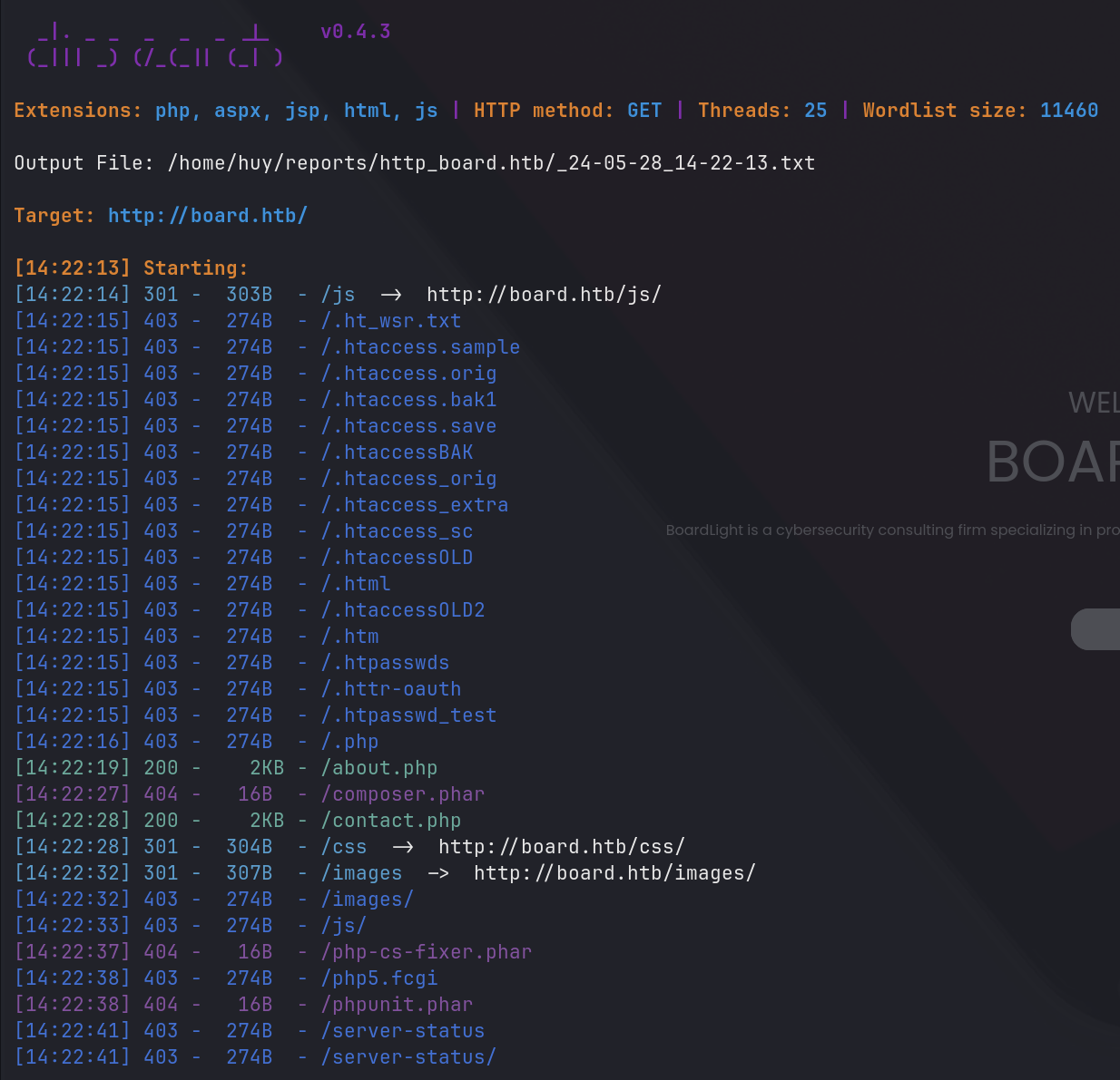 I will first add the IP to my /etc/hosts and name it board.htb.