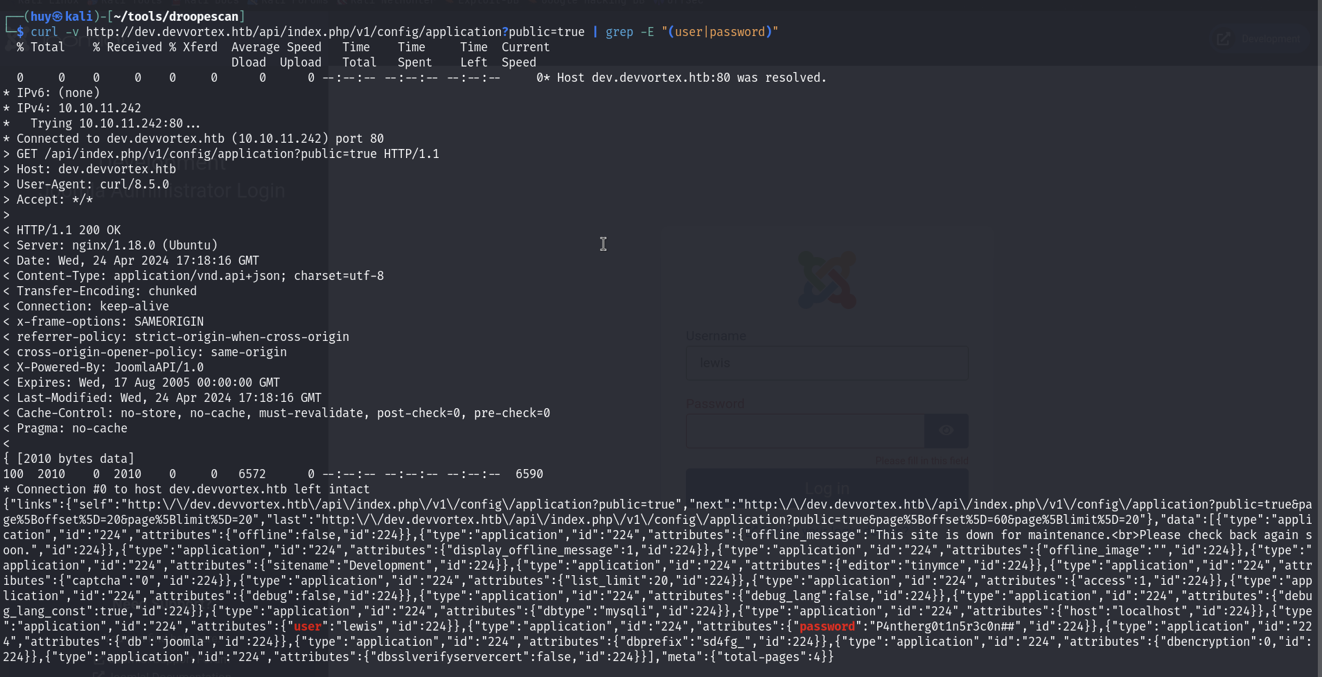 Disallow: /tmp/Now we can confirm that the website is running Joomla CMS. I started to search for Joomla exploits and found a guidance from HackTrick, I managed to get the credentials of the joomla dashboard.