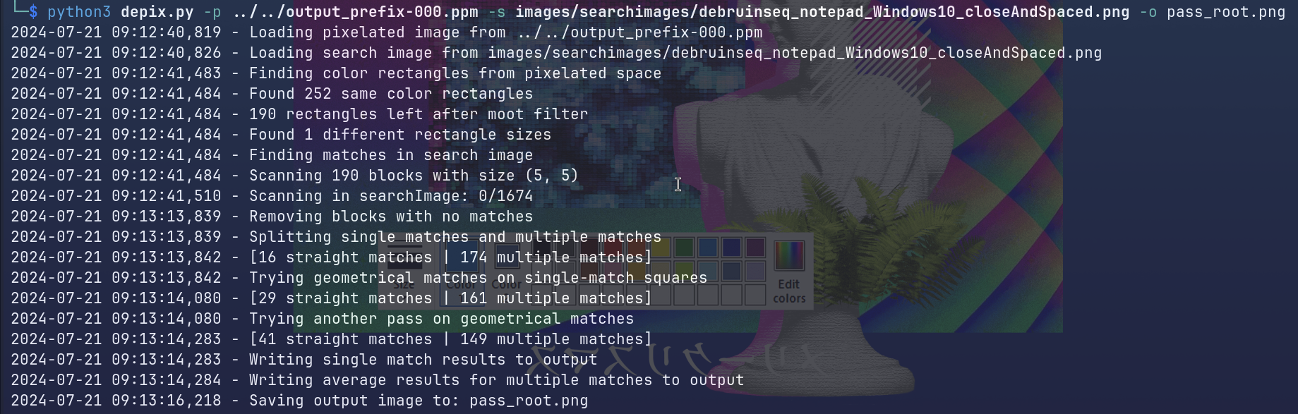 pdfimages -j openvas.pdf output_prefixThen I used the Depix tool to extract the password: