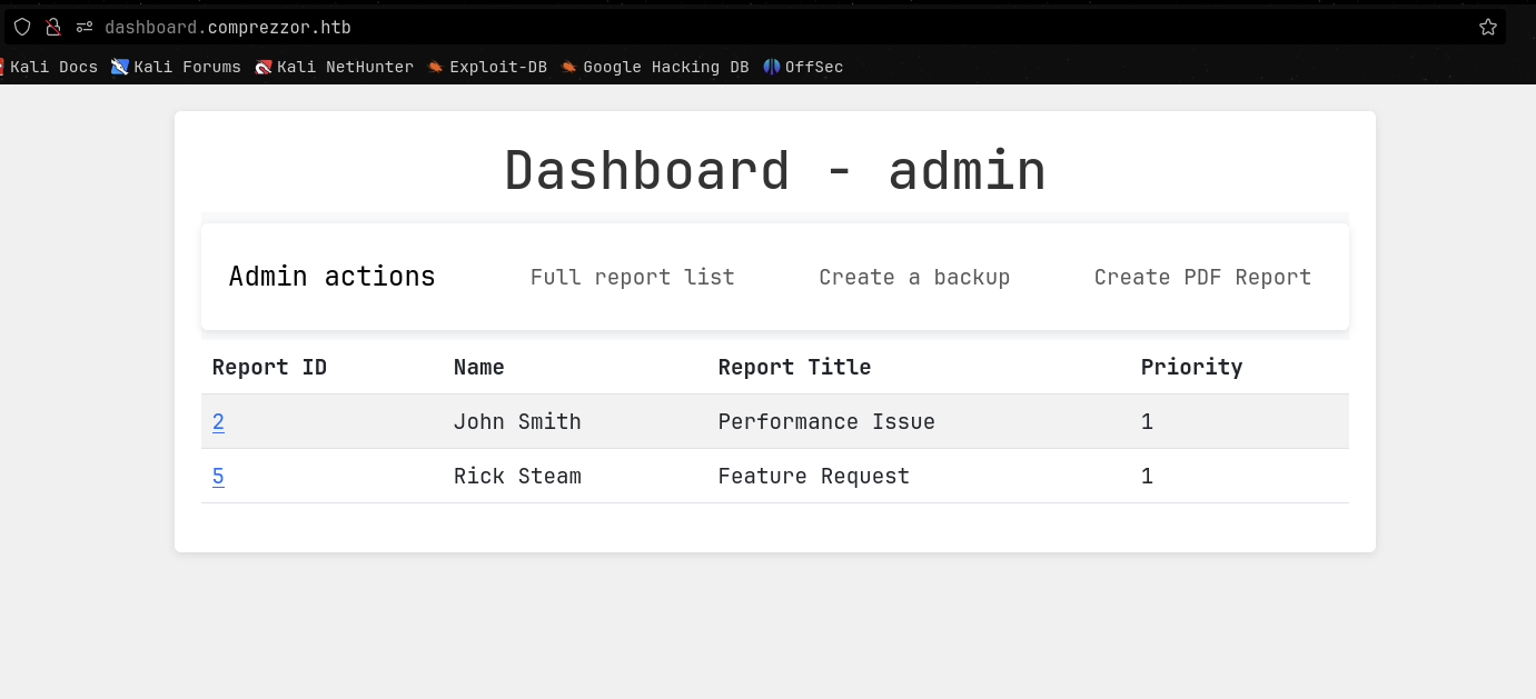 Now with the admin role, I can visited the dashboard subdomain again and see the following page.