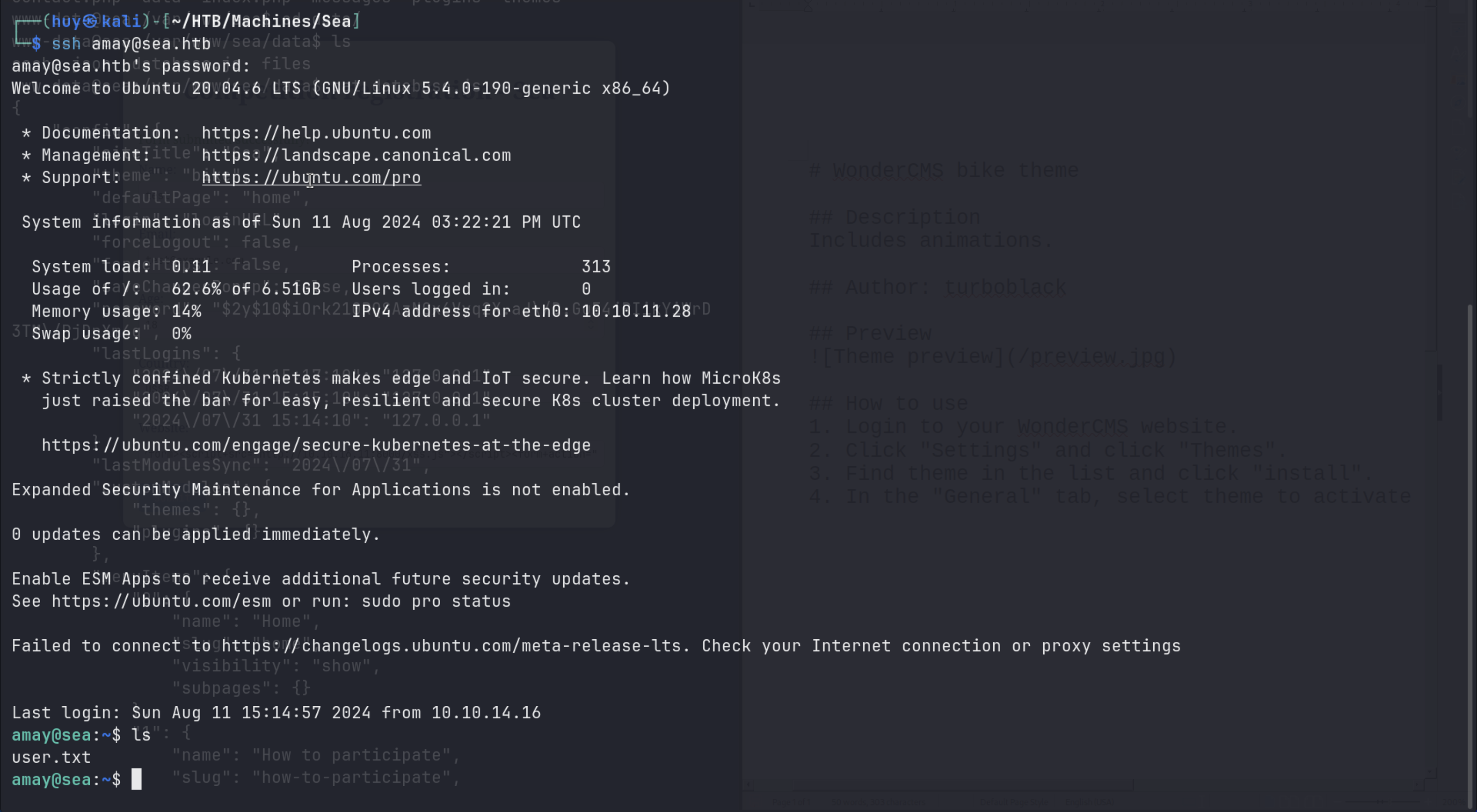 ssh -f -N -L localhost:4444:sea.htb:8080 amay@sea.htbQuick explanation:
