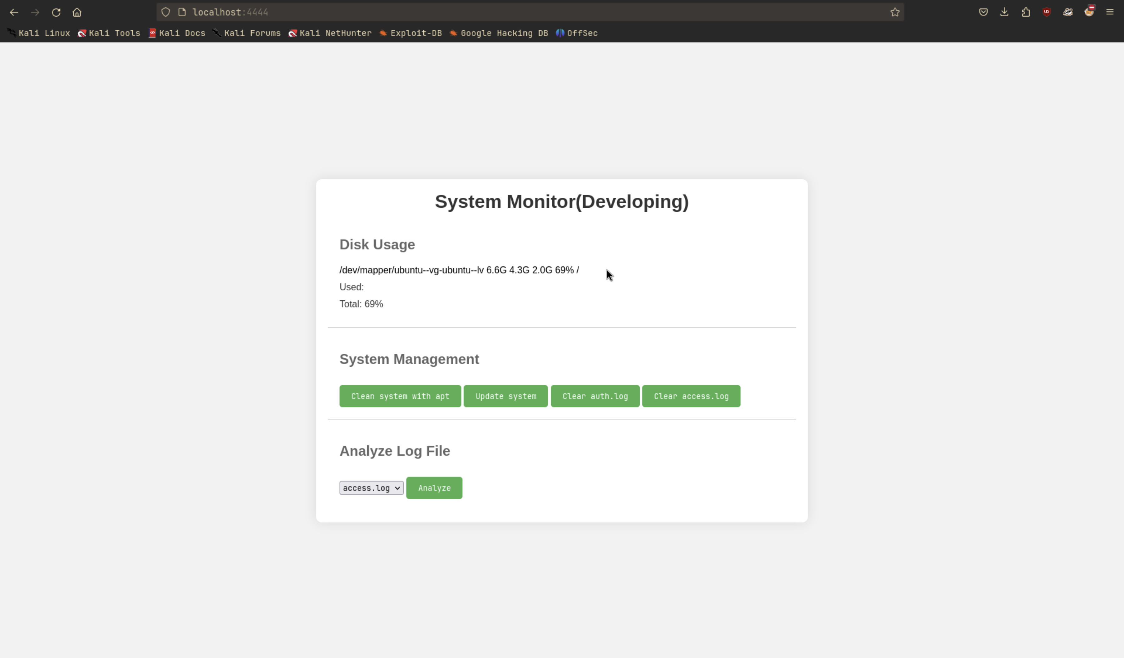 A system monitor page, this website might be working closely with the system. One notable function is the Analyze Log File function. Let’s check it out.