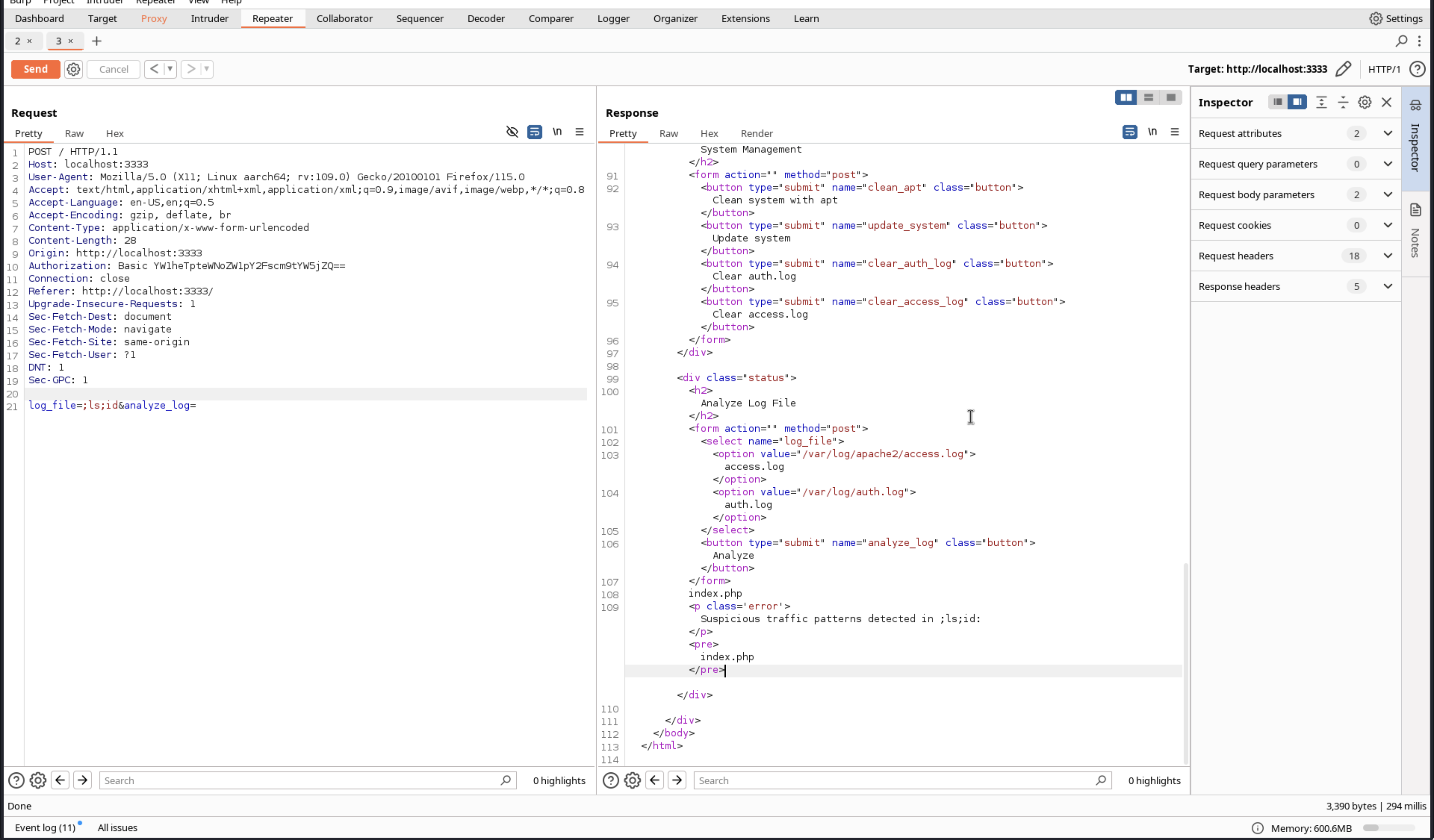 It seems like we can inject commands into the log file. Let’s try to execute a command.